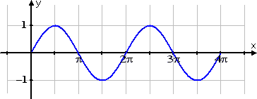 The regular period for sine waves goes from 0 to 2π; this one goes from 0 to 2, so I'll re-number the x-axis: