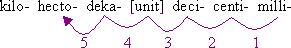 kilo- hecto- deka- [unit] deci- centi- milli-