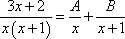 Since the coefficient equation 3x + 2 = A(x + 1) + B(x) is supposed to be true for any value of x, we can then try to pick *useful* values of x, do the plug-n-chug, and find the values for A and B.