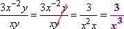 I'll move the one variable with a negative exponent, cancel off the y's, and simplify: