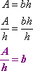In this case, I won't be able to get a simple numerical value for my answer, but I can proceed in the same way, using the same step for the same reason (namely, that it gets b by itself). So, following the same reasoning for solving this literal equation as I would have for the similar one-variable linear equation, I divide through by the "h":